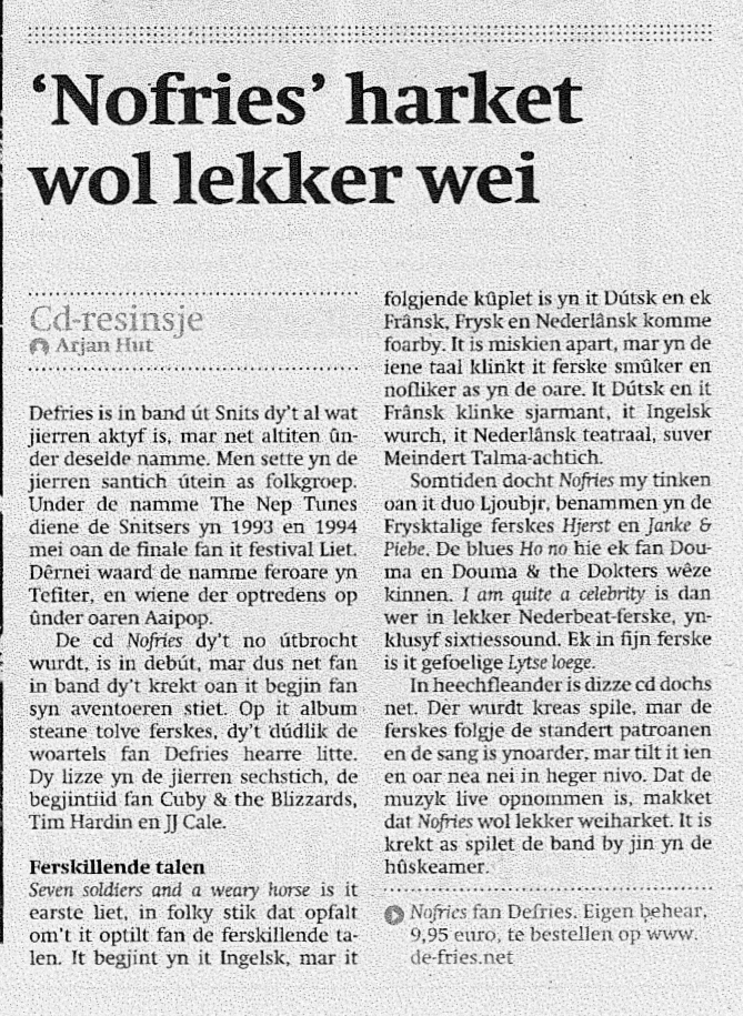 Op 9 november 2012 speelden we in het radioprogramma Noardewyn (presentatie Willem de Vries) van Omroep Fryslân, samen met o.a. Rowen Hèze.